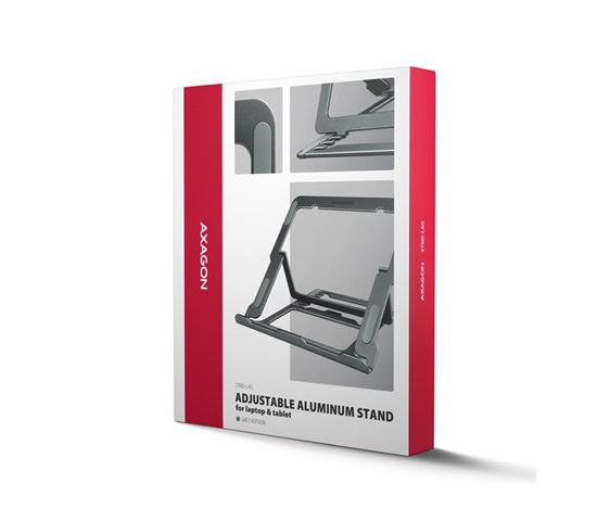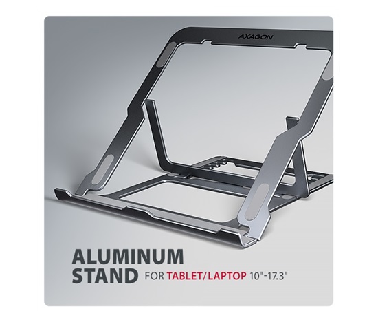 AXAGON STND-LAG, hliníkový stojan pro notebooky 10″-17.3″, nastavitelná výška, šedý