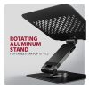 Stojan lze snadno složit do kompaktních rozměrů, což umožňuje pohodlné přenášení kamkoli potřebujete. Jeho elegantní design v černé barvě stylově doplní váš pracovní stůl. Větrací otvory v podložce zajišťují optimální odvod tepla z vašeho notebooku, čímž zvyšují jeho výkon a životnost.