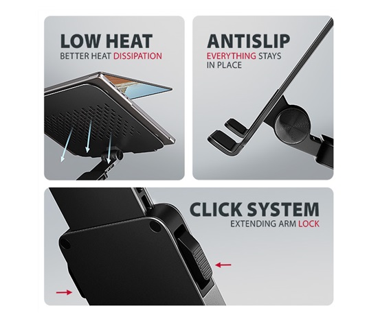 • Držák notebooku umožňuje lepší odvod tepla.