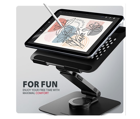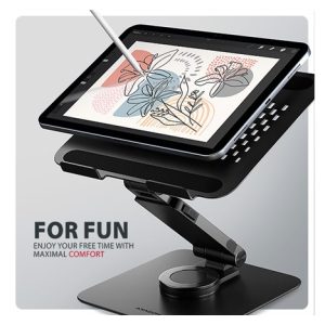 AXAGON STND-LRB je stojan s 360° rotací, dvojitým kloubem a výsuvným ramenem, který zajišťuje maximální pohodlí a výrazně zlepšuje ergonomii při práci s notebookem nebo tabletem. Je určený pro zařízení od 10″ do 17.3″, umožňuje nastavit ideální výšku a úhel pro uvolnění krčních a zádových svalů. Díky 360° mechanismu a výsuvnému ramenu se dokonale přizpůsobí vašim potřebám ať už pracujete doma, v kanceláři, nebo na cestách. Kompaktní a přenosný design stojanu vám zajistí komfortní pracovní prostředí kdekoliv.