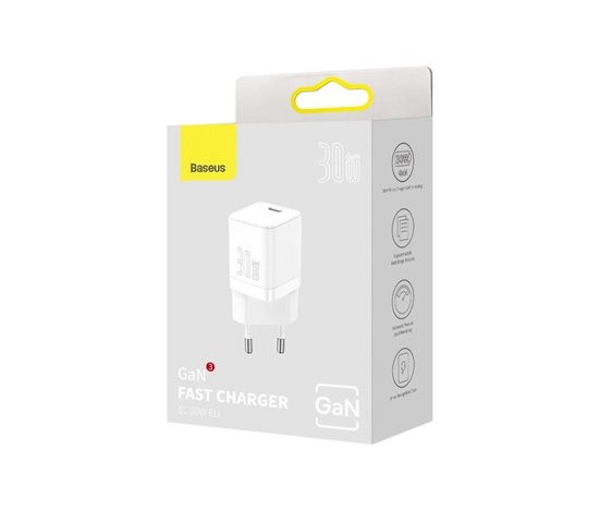 Úvod Elektronika Mobilní telefony a tablety Příslušenství k Mobilům a Tabletům Baseus GaN3 rychlonabíjecí adaptér IC 30W, bílá