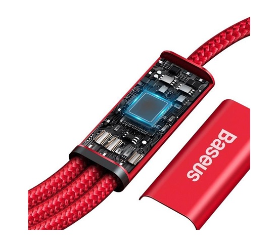 Kvalitní opletený multifunkční datový a nabíjecí kabel s konektorem USB-C, zakončený hned trojicí konektorů (Lightning nabíjecí/datový port, USB-C nabíjecí port a microUSB – nabíjecí port) v červeném provedení. Kabel podporuje přenosovou rychlost až 480Mbps. Délka kabelu (lze sepnout páskem na suchý zip) je dostatečná pro pohodlné používání a nylonové opletení zaručí dlouhou životnost. Díky své univerzalitě je možné najednou propojit širokou škálu mobilních zařízení.
