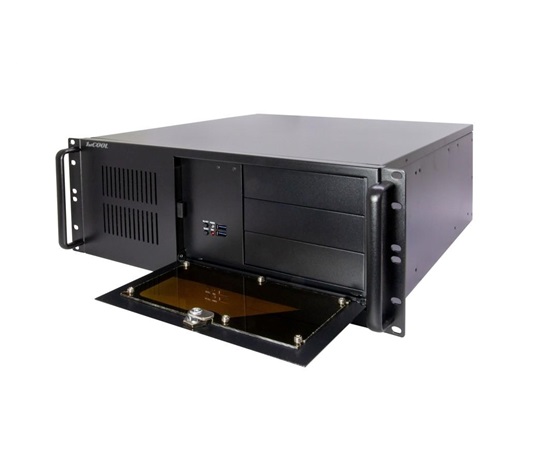 IPC 4U-450 je velice kvalitní serverová skříň určená pro montáž do rackového rozvaděče 19″. Skříň je vyrobena z plechu o dnes již málo vídané sile 1,2mm. Čelní panel je zakryt odklopnými plechovými dvířky s možností uzamčení. Při zavřeném panelu jsou viditelné pouze indikační LED přes průhlednou část dvířek. Po odklopení dvířek jsou k dispozici ostatní ovládací prvky.