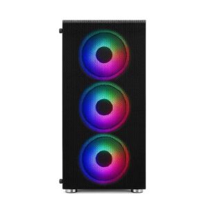 Integrovaný zdroj; Provedení skříně:Midi Tower; Výkon zdroje (W):650; Barva skříně:Černá; Počet pozic 3.5″ (HDD):2; Počet pozic 2.5″ (SSD):2; Bočnice:Prosklená; Podsvícení:RGB; Vybavení PC skříně:Průhledná bočnice