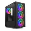 BAZAR – 1stCOOL skříň Rainbow 4, Mid Tower, ATX, AU, Průhledná bočnice, 4x 120mm Fan, 650W, 88+, Černá, poškozený obal