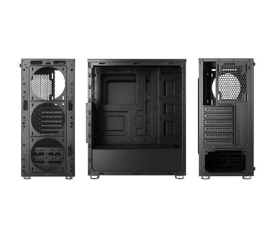 Integrovaný zdroj; Provedení skříně:Midi Tower; Výkon zdroje (W):650; Barva skříně:Černá; Počet pozic 3.5″ (HDD):2; Počet pozic 2.5″ (SSD):2; Bočnice:Prosklená; Podsvícení:RGB; Vybavení PC skříně:Průhledná bočnice