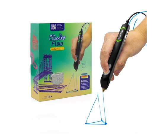 BAZAR – 3Doodler 3D pero FLOW + 8 PLA náplní a 3D šablona – Poškozený obal (Komplet)