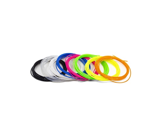 • Balení obsahuje 8ks různobarevných PLA náplní o délce 3 metry a průměru 1,75 mm a sadu šablon