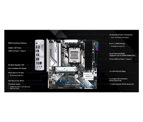 - Supports AMD Socket AM5 Ryzen™ 9000, 8000 and 7000 Series Processors