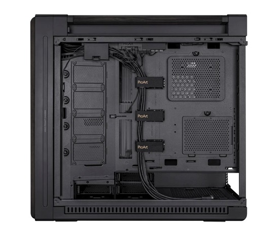Počítačová skříň ProArt PA602 E-ATX, podpěra chladiče 420 mm, jeden 140 mm a dva 200 mm předinstalované systémové ventilátory, IR indikátor prachu na předním panelu, západka zámku napájení, montáž PCIe bez použití nářadí, podpora USB 20 Gb/s