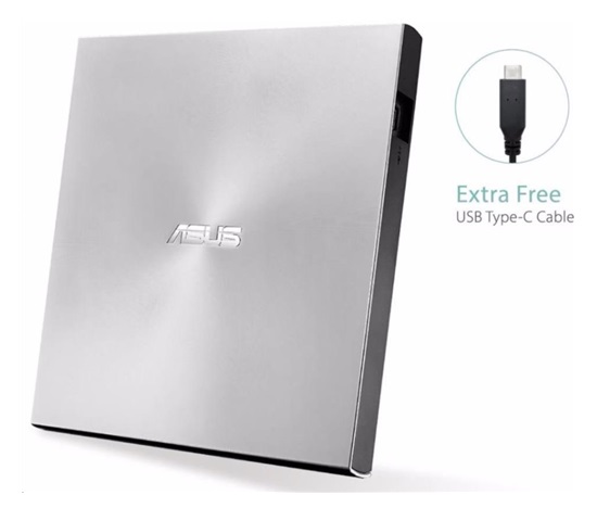 BAZAR ASUS DVD ZenDrive SDRW-08U9M-U SILVER, External Slim DVD-RW, USB Type-C/Type-A, M-DISC (POŠKOZENÝ OBAL)