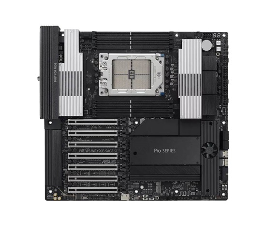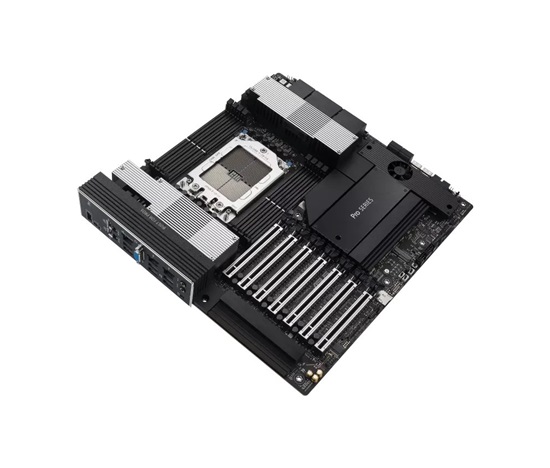 AMD sTR5 EEB workstation motherboard, 7 PCIe 5.0 x16 slots, multi-GPU support, robust 32+3+3+3 power-stage design, CPU and memory overclocking ready, 4 PCIe 5.0 M.2 slots, dual 10 Gb LAN, PCIe Q-Release Slim
