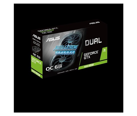Bazar – ASUS VGA NVIDIA DUAL-GTX1660S-O6G-EVO, GTX 1660 SUPER, 6GB GDDR6, 1x DVI, 1x HDMI, 1xDP, bez příslušenství