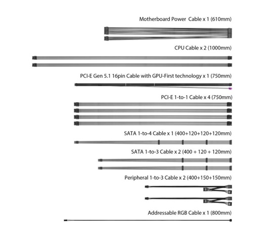 | PCIe 12+4pin Konektor | 1x / 1x (750mm) |