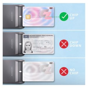 * Pozn.: Čtečka podporuje pouze kontaktní karty, které mají na povrchu viditelné kontakty. Karty bez kontaktů, známé jako RFID, nelze ve čtečce použít.