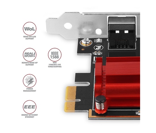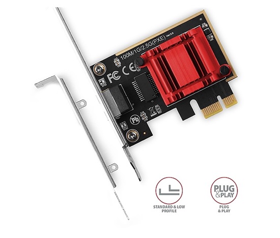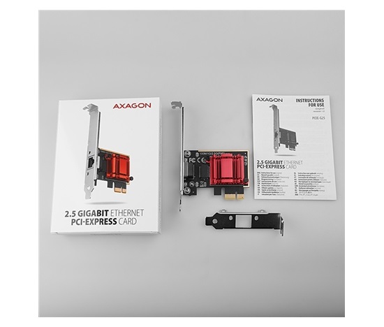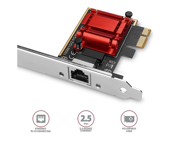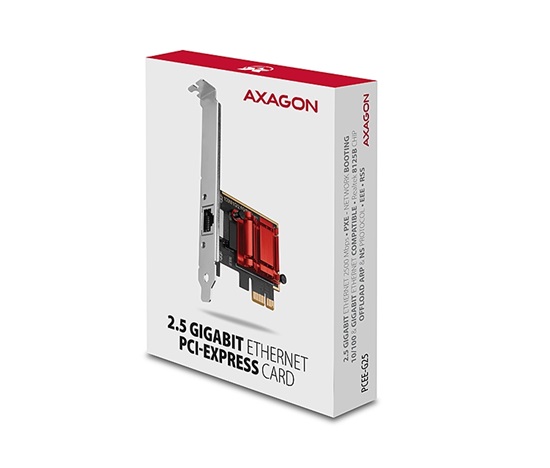 PCI-Express síťová karta AXAGON PCEE-G25 rozšíří stolní počítač o vysokorychlostní 2.5 Gigabit Ethernet připojení. Zpětně kompatibilní s Gigabit a 10/100Base-T sítěmi.
