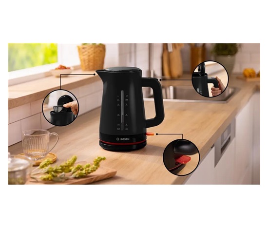 BAZAR – Bosch MyMoment TWK3M123 rychlovarná konvice, 2400 W, 1.7 l, černá – poškozený obal