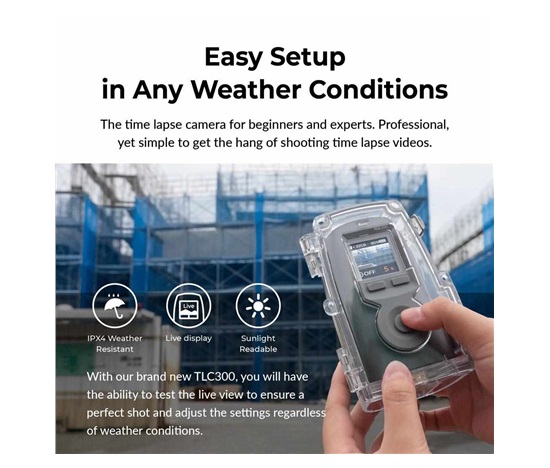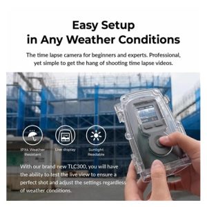 Sada Construction BCC300 je dokonalým řešením pro každého, kdo začíná s časosběrnou fotografií. Díky svému snadno použitelnému rozhraní je ideální pro amatéry, zatímco vodotěsné pouzdro a montážní příslušenství umožňují bezstarostné venkovní použití.