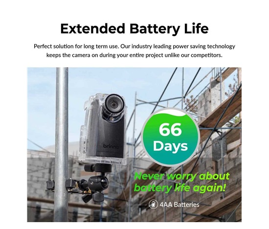 Revoluční technologie úspory energie společnosti Brinno je ideální pro dlouhodobé projekty a udrží vaši kameru nabitou déle než jakákoli jiná akční kamera na trhu.