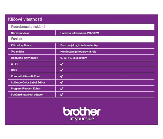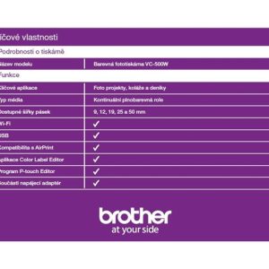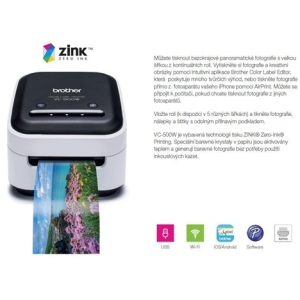 BAZAR – BROTHER tiskárna štítků FOTO – VC500W – WIFI, USB, COLOR bez potřeby inkoustu – Integrovaný odstřih – Poškozený