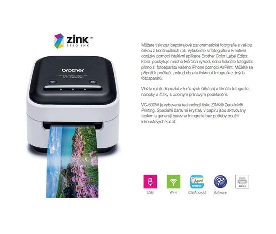 Barevná fototiskárna VC-500W – ZINK Zero-Ink Full Colour Printing Technology