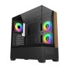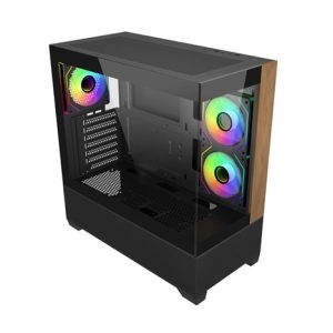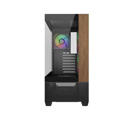 Model Elite 690 má čistý a moderní design a je vybaven dvěma panely z tvrzeného skla na přední a boční straně, které prezentují prémiové komponenty a osvětlení RGB. Přední panel kombinuje přírodní akcent s texturou dřeva se spodním sáním ze síťoviny, což přináší jak estetické teplo, tak efektivní proudění vzduchu. Díky rozsáhlému větrání na horní a spodní straně podporuje skříň univerzální konfigurace ventilátorů a chladičů, které umožňují výkonné vertikální chlazení. Ať už stavíte vysoce výkonnou předváděcí sestavu nebo stylovou stolní sestavu, Elite 690 poskytuje dokonalou rovnováhu mezi funkčností a formou.