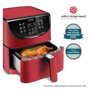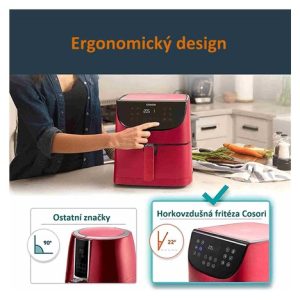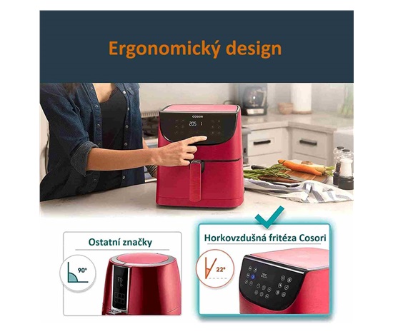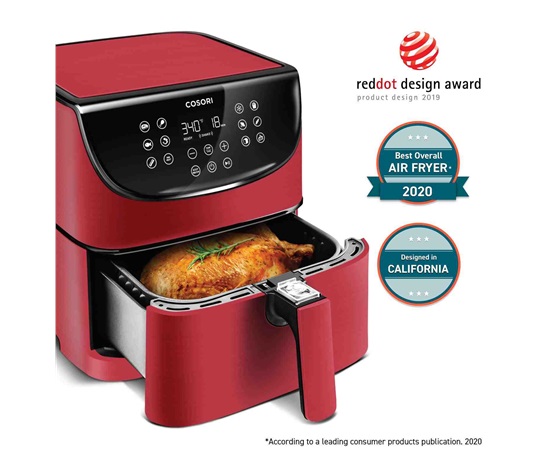 Design horkovzdušné fritézy COSORI CP158-AF byl navržen v Kalifornii. Díky své praktičnosti, funkcím, ovládání i přehlednému dotykovému nakloněnému LED displeji se snadno přístupnými tlačítky získal také prestižní ocenění Red Dot Award za nejlepší design.