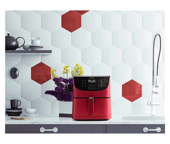 Horkovzdušná fritéza COSORI CP158-AF má 6l varný prostor a 5,5l koš s praktickým čtvercovým tvarem, díky čemuž uspokojí i početnější domácnosti. S výkonem 1700 W je fritéza extrémně výkonná, což zkracuje dobu vaření a šetří tak elektrickou energii. Díky velikosti varného prostoru fritézy je v možné připravit třeba i celé 3kg kuře v kuse, které by se do fritézy s kruhovým košem nebo objemem 3-4l vešlo jen velice těžko.