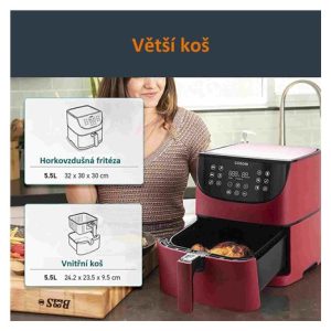 - Vysoký objem fritovacího koše – až 5,5l při zachování kompaktních rozměrů