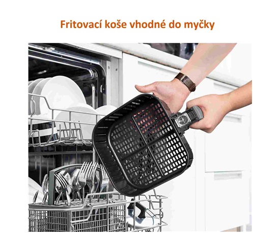 Vyjímatelný fritovací koš a nádoba jsou vyrobeny z odolného, nepřilnavého a zdravotně nezávadného materiálu (BPA a BFOA FREE) a lze je mýt v myčce. Vždy chladná rukojeť a tlačítko pro uvolnění koše eliminují riziko popálení a nechtěného uvolnění.