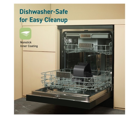 Vyjímatelný fritovací koš a nádoba jsou vyrobeny z odolného, nepřilnavého a zdravotně nezávadného materiálu (BPA a BFOA FREE) a lze je mýt v myčce. Vždy chladná rukojeť a tlačítko pro uvolnění koše eliminují riziko popálení a nechtěného uvolnění.
