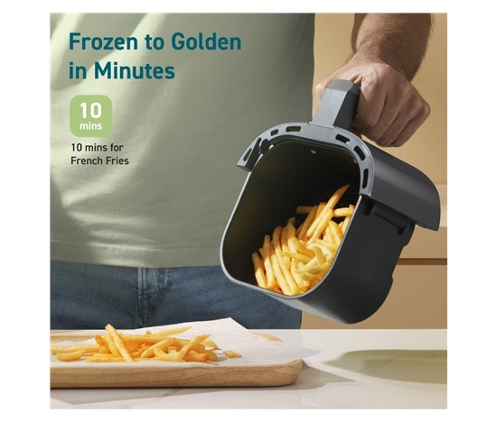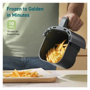 S horkovzdušnou fritézou COSORI Lite 2.0L Mini PRO si můžete užít vaše oblíbená smažená jídla bez výčitek, protože na rozdíl od běžného smažení nebo fritování je možné v ní připravovat jídla za použití velice malého množství oleje a nebo vůbec žádného. Kombinace cirkulujícího horkého vzduchu, dokonalé teploty vaření a chytrých programů zajistí, že hranolky budou vždy krásně křupavé a kuřecí stehna šťavnatá. Ať už je vaše jídlo čerstvé nebo mražené, stisknutím tlačítka můžete horkým vzduchem smažit kuřecí křídla, kuřecí prsa, sladké brambory, steaky, čerstvé hranolky a mnoho dalšího. Až budete mít hotovo, čištění bude stejně snadné díky nepřilnavému koši, který lze mýt v myčce.
