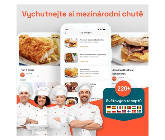 Fritéza Cosori TwinFry byla navržena v Kalifornii a na jejím vývoji pracoval také tým Cosori kuchařů. V aplikaci najdete přes 200 mezinárodních receptů, které můžete díky jednoduchosti přípravy jídla ve fritéze jednoduše připravit svým blízkým.