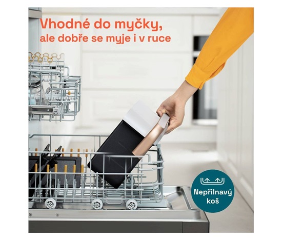 • Koš, crisper talíře, nádoba a dělič jsou jednoduše umývatelné v myčce