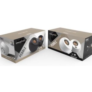 Kulovitý reproduktor Creative Pebble, inspirovaný zenovou japonskou skalkou, je moderní a elegantní 2.0 reproduktorový systém, který představuje ideální doplněk každé domácnosti a kanceláře. Zvukové pole s náklonem 45° zajišťuje vylepšené šíření zvuku. Napájení zajišťuje jediný USB kabel pro bezstarostnou zábavu.