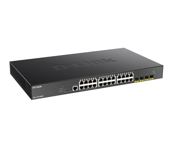 D-Link DGS-1250-28XMP je L2/L3 Gigabit Smart Managed switch osazený 24 porty 10/100/1000Base-T RJ-45 s podporou napájení 802.3at PoE+ (max. 30W na port) a 4 dvourychlostními 1G/10G SFP+ porty pro uplink nebo pro připojení serverů, s podporou Gigabit SFP a 10G SFP+ transceiverů. Celkový PoE výkon switche je 370W.