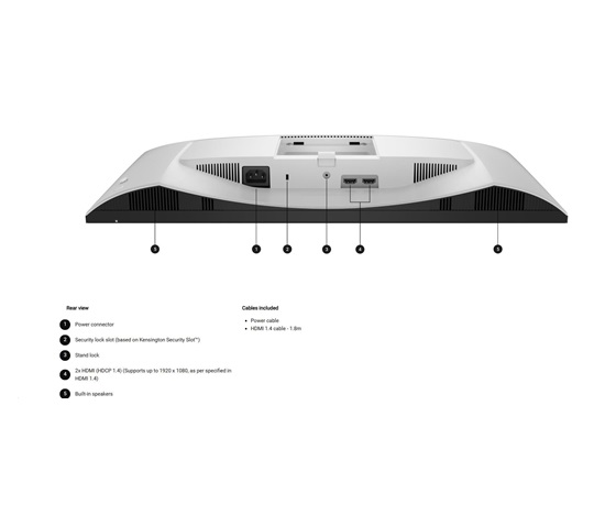 Rozlišení displeje:1920×1080 (Full HD); Úhlopříčka displeje („):23.8; Výbava:Reproduktory, VESA montáž, Pivot; Rozhraní vstup:HDMI; HDMI počet:2; HDMI verze:1.4; Doba odezvy (ms):1; Formát obrazovky:16:9; Typ panelu:IPS; Jas (cd/m2):300; Kontrast:1:1500; Povrchová úprava displeje:Matný; VESA rozměry:100×100; Standardní záruka (roky):3; Rozhraní:HDMI