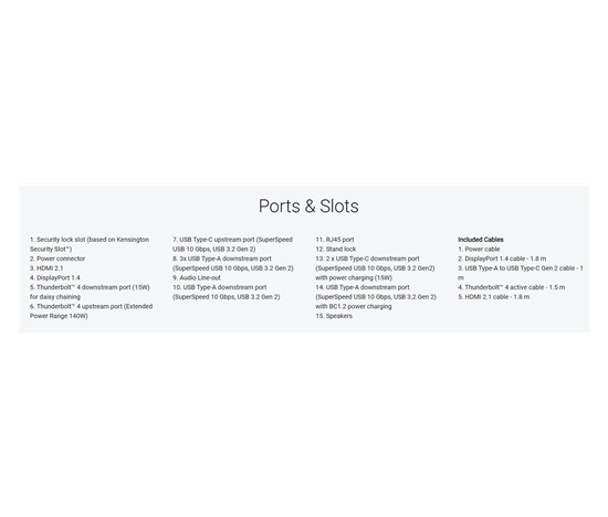 - 1 x ThunderboltTM 4 downstream port (15 W) for daisy chaining (Video + Data)