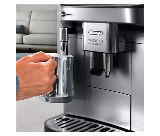 Automatický kávovar De’Longhi Magnifica EVO uspokojí každého milovníka mléčných kávových nápojů. Pomocí „Cappuccino systému“ v podobě integrované trysky si připravíte cappuccino, latte macchiato nebo flat white.