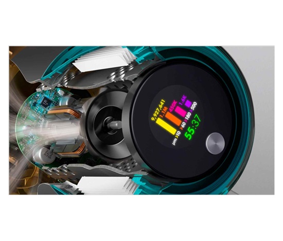 Výkonný, lehký digitální motor se roztočí až na 125 000 otáček za minutu a vysává mikroskopický prach a velké nečistoty.