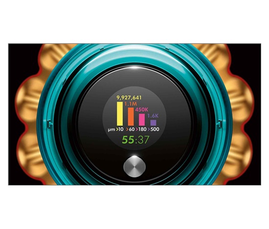 Displej LCD ukazuje, co bylo vysáto, a v reálném čase zobrazuje vědecký důkaz o hloubkovém čištění.