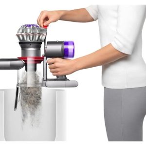 Vysavač Dyson V8 se zasouvá do úchytu na stěně, který slouží k nabíjení vysavače i úhlednému uložení příslušenství. Jedná se o praktické řešení, které je vždy po ruce.