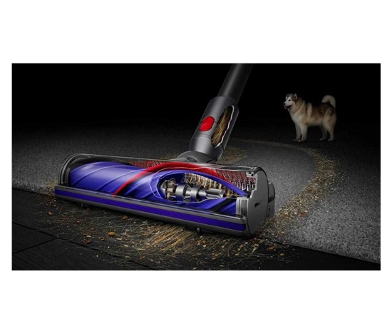 Podlahová hubice Motorbar™ na koberce s integrovanými zuby proti namotávání: Integrovaný motor otáčí rotačním kartáčem podlahové hubice až 60krát za sekundu. Díky němu tuhé nylonové štětiny kartáče pronikají hluboko do koberce a odstraňují nečistoty, zatímco karbonová vlákna zachytí jemný prach na tvrdých podlahách.
