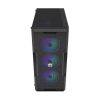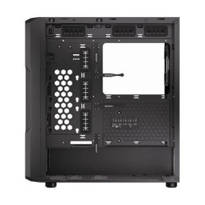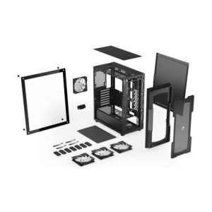 Skříň formátu Middle Tower s průhlednou bočnicí z tvrzeného skla nabízí dvě 2,5″ pozice pro SSD disky a dvě 3,5″ pozice pro pevné disky. Na horní části se nachází dva USB 3.0 porty, sluchátkový výstup a audio vstup pro mikrofon. Vybavena je čtyřmi 120 mm ventilátory s ARGB podsvícením, které spolu s perforovaným čelním panelem zajišťují dostatečné proudění vzduchu. Důmyslné řešení umožňuje pohodlné umístění až 360 mm dlouhého výměníku vodního chlazení na přední straně. Ve skříni je dostatek prostoru pro chladič CPU do výšky až 162 mm a grafickou kartu o délce až 370 mm. Dodávána je bez zdroje. Součástí je také interní ARGB ovladač a sada prachových filtrů.