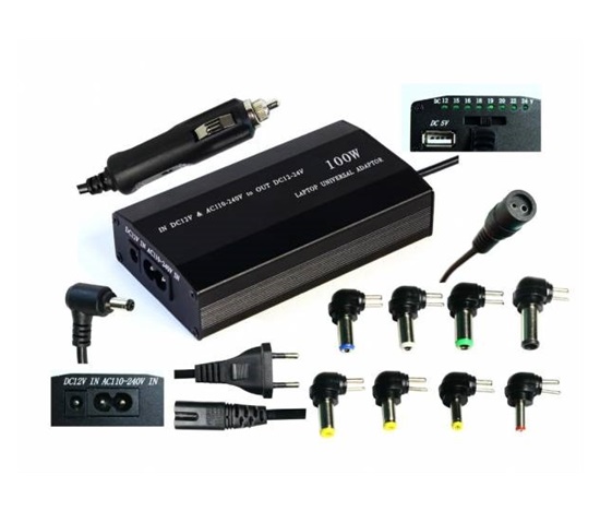 BAZAR – EUROCASE univerzální napájecí adaptér 100W, AC 110-240V/CAR DC 12V, DC 12- 20, Poškozený obal