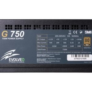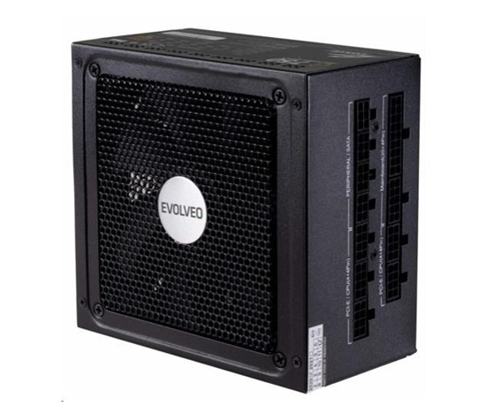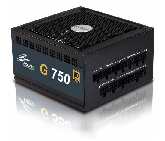Zdroj EVOLVEO G750 je ideální volba do jakéhokoliv herního počítače. Vyjímá se především účinností s certifikací 80 PLUS GOLD zaručující účinnost až 90%. Zdroj je plně modulární, z toho důvodu je možné připojit jen nejnutnější kabely. Součástí je i tichý 140mm ventilátor. V kombinaci se semi-pasivním chlazení do 30% zatížení je zaručen tichý chod zdroje. Nedílnou součástí jsou i ochrany proti poškození komponent v PC a i zdroje samotného.