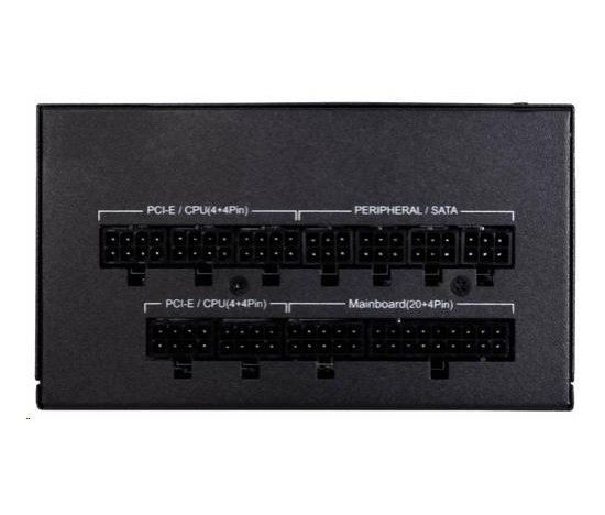 Výkon zdroje (W):750; Formát zdroje:ATX; Konektory:PCIe 8-pin, SATA 15-pin, Molex, FDD; Konektory pro základní desku:ATX 20-pin, ATX 24-pin, EPS 8-pin; Modulární kabeláž; Efektivita zdroje:80 Plus Gold; Vlastnosti zdroje:Modulární kabeláž