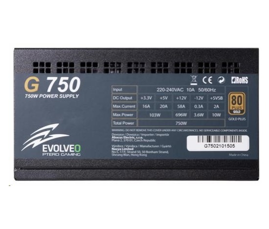 BAZAR – EVOLVEO G750 zdroj 750W, eff 91%, 80+ GOLD, aPFC, modulární, retail – Poškozený obal (Komplet)