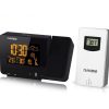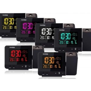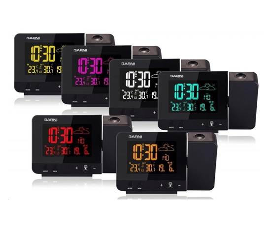střídavá projekce času a vnitřní a vnější teploty (teploty se střídají co 5 s) s možností otočení obrazu o 180°, možnost sklopení tubusu projektoru o 90° dopředu a dozadu