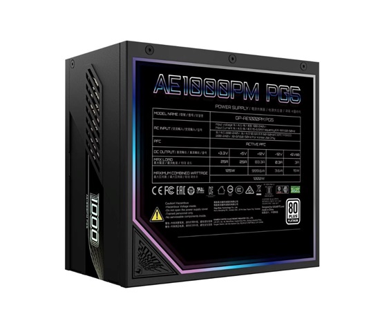 AE1000PM PG5 dokáže vydržet až 3násobek výkonu GPU a 2násobek celkového výkonu. Je plně kompatibilní se standardem Intel ATX 3.1, podporuje až 200% výkyvy výkonu a dosahuje 70% účinnosti při nízké zátěži. Přiložený vysoce kvalitní nativní 16kolíkový kabel navíc zajišťuje kompatibilitu s grafickými kartami PCIe Gen 5 a poskytuje výkon až 600 wattů.